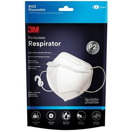 3M 9123 Particulate Respirator Mask Disposable P2 White Pack Of 3