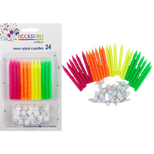 Alpen Occasions Birthday Candles With Holders Spiral Neon Assorted Pack Of 24