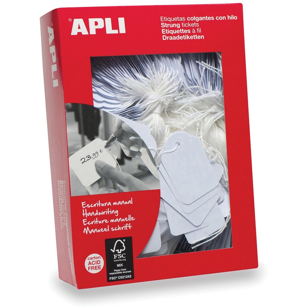 Apli 383 Handwriting Strung Tickets 7 x 19mm White Box Of 1000