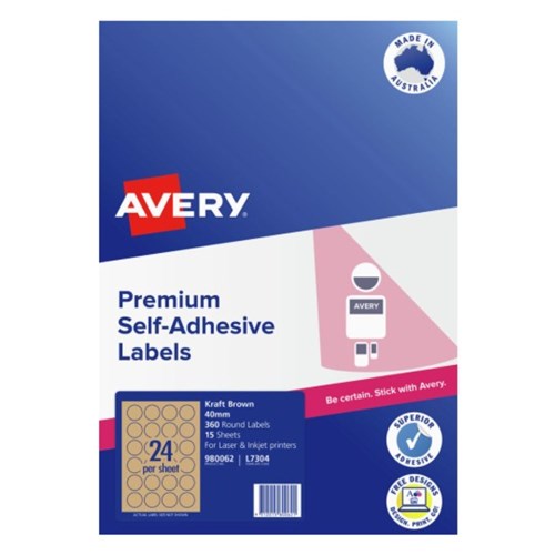 Avery Blank Printable Labels L7304 40mm Round Kraft Brown 24UP 360 Labels 15 Sheets