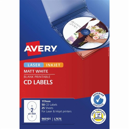 Avery CD Laser & Inkjet Labels White L7676 1117mm 2UP 50 Labels