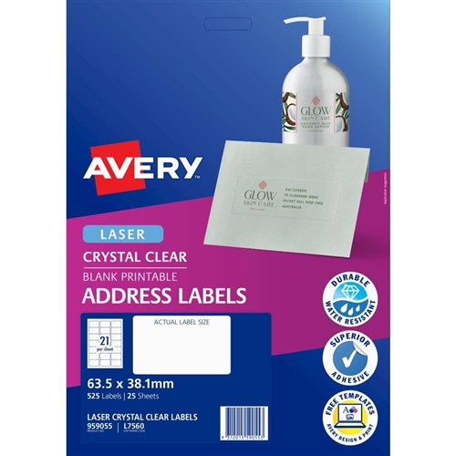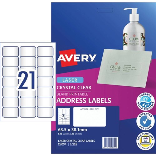 Avery Crystal Clear Laser Address Labels White L7560 63.5x38.1mm 21UP 525 Labels