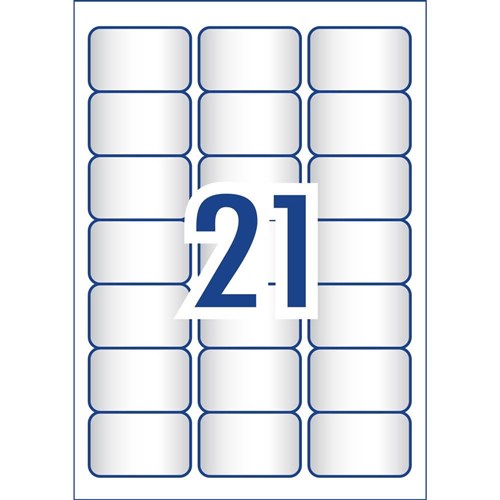 • Size: 63.5x38.1mm 525 labels, 25 sheets. 21 labels per sheet (21UP).