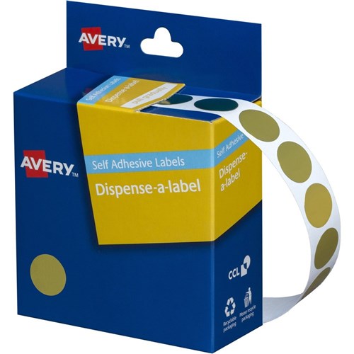AVERY DMC14GO DISPENSER LABEL Circle 14mm Gold Pack of 500