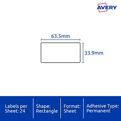 AVERY J4773 DURABLE LABELS IJet H/Duty 24/Sht 64x33.8 Wht PK240