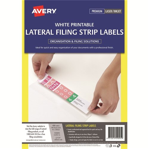 Avery Lateral Filing Laser & Inkjet Labels White L7174 42x200mm 400 Labels 100 Sheets