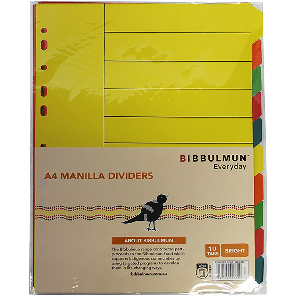 Bibbulmun Manilla Divider A4 10 Tab Bright Colours