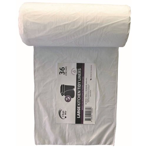 Clean Wiz Oxo-Biodegradable Kitchen Tidy Liners 36 Litres White Roll Of 50