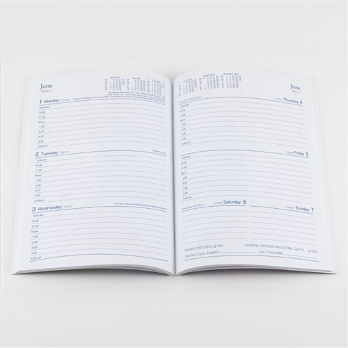 • The range is available as an A5 Week to View Student Diary (spiral or perfect bound) and practical A4 and A5 wire weekly notebook.