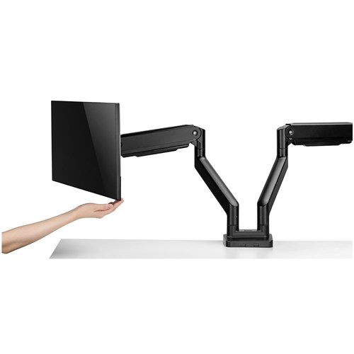 • Premium heavy duty monitor arm confidently holds monitors up to 16kg per arm.
