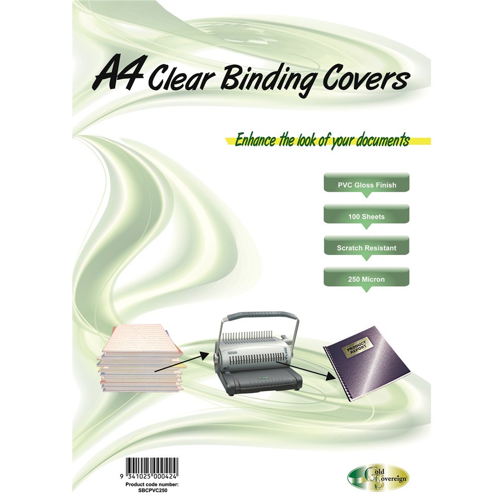 Gold Sovereign Heavy Duty Binding Covers 250 micron A4 Pack of 100 Clear
