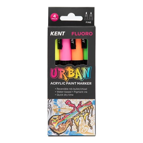 Kent Urban Paint Markers Fine 3mm Dual Nib Fluoro Assorted Pack Of 4