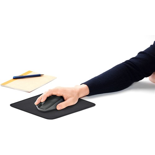 • Logitech M190 is a full-size wireless mouse with a comfortable contoured design that follows the natural curve of medium to large hands.