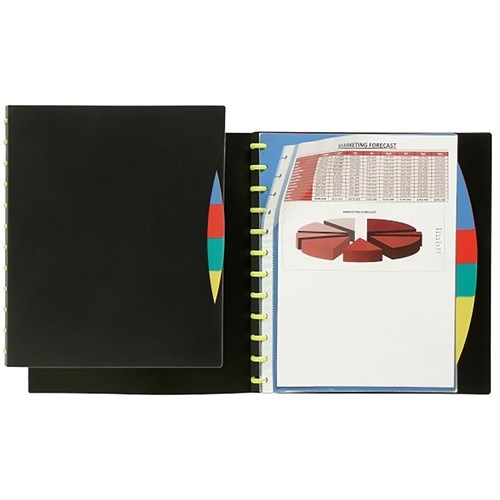 Marbig Kwik Zip Display Book A4 Refillable 20 Pocket With 4 Colour Dividers Black Cover
