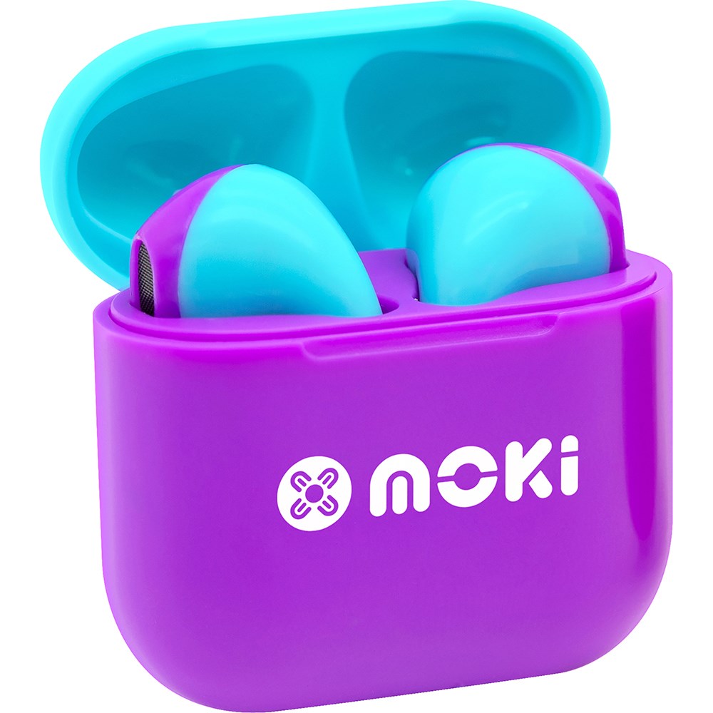 Moki MokiPods Volume Limited True Wireless Stereo Kids Mini Earphones Purple and Aqua