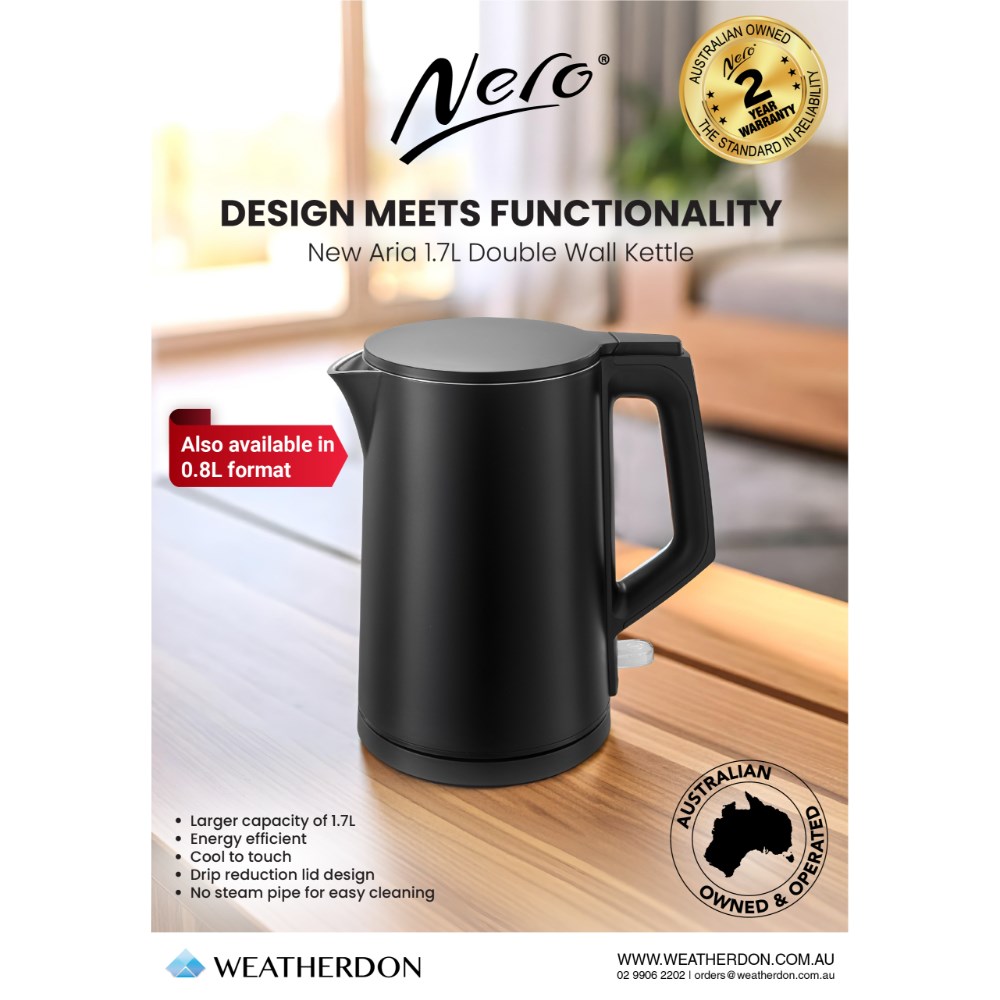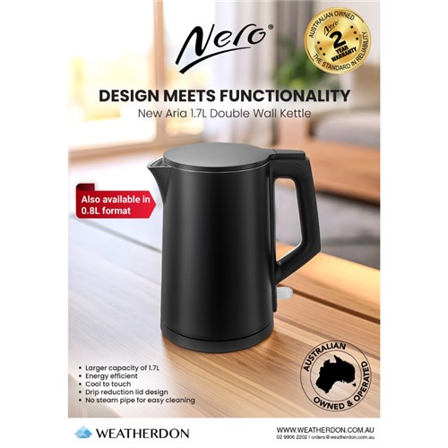 Nero Aria Double Wall Kettle 1.7 Litres Black