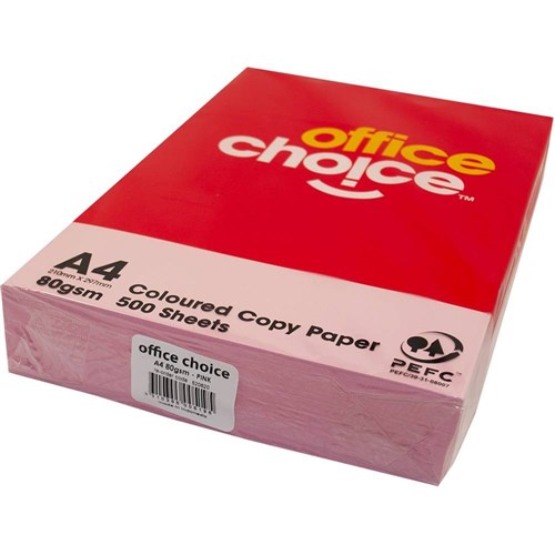 Office Choice Copy Paper Tinted A4 80gsm Pink Ream of 500