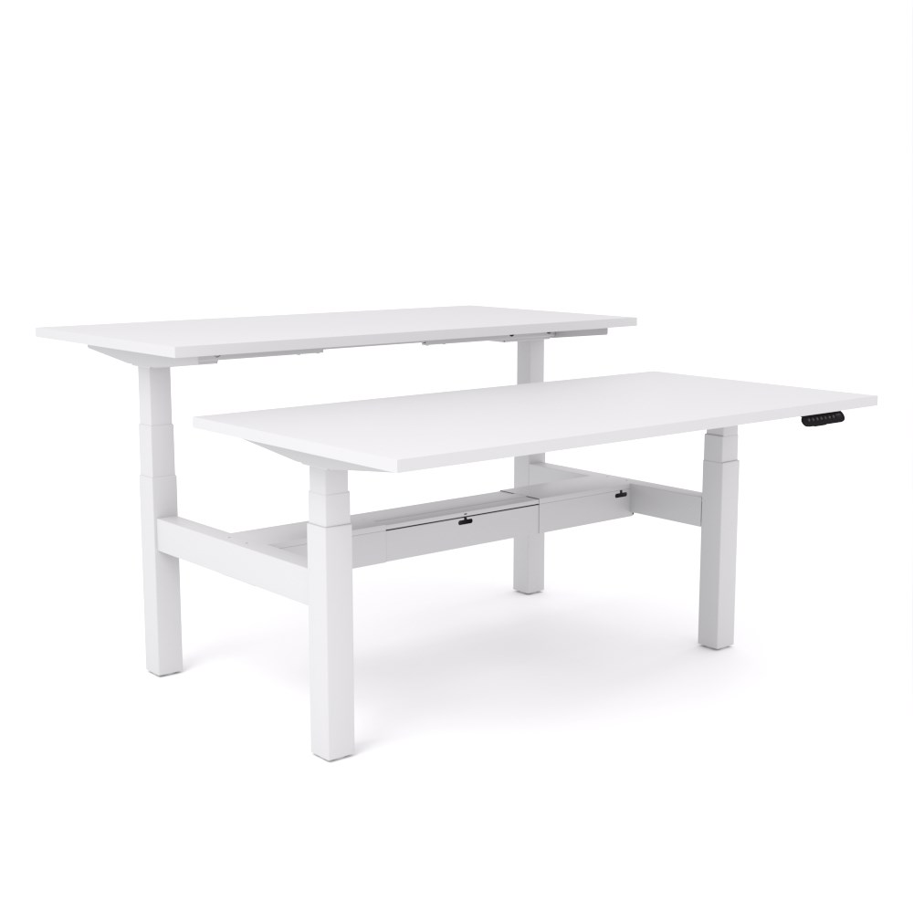 OLG Agile Motion Double Sided Desk + Cable Tray 1500Wx1500Dx 620-1270mmH White/White