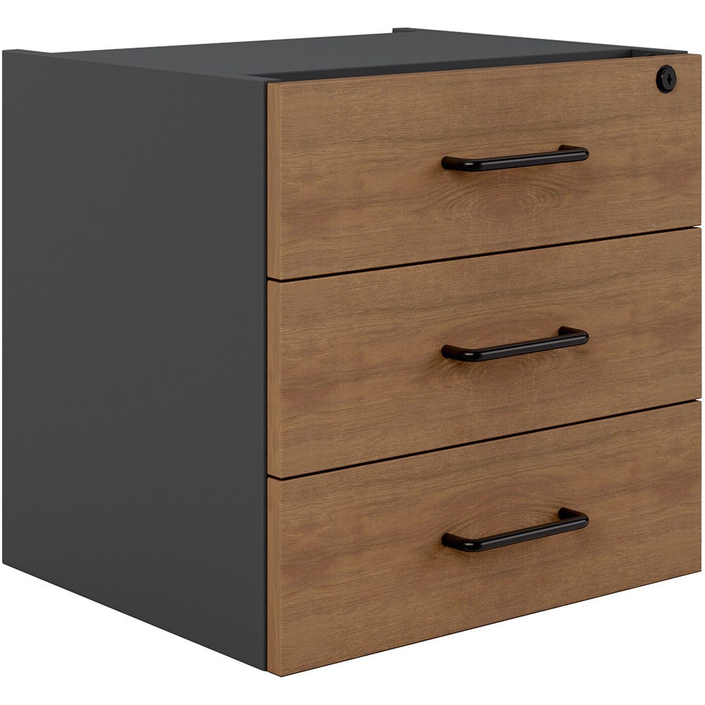 OM Premier Fixed Pedestal 3 Drawer 464W x 400D x 450mmH Regal Walnut And Charcoal