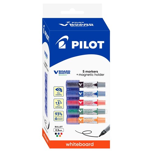 Pilot BeGreen V Board Master Whiteboard Marker Bullet Tip Assorted Colours Pack of 5