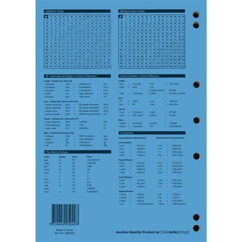 • 4 year calendar, activity page, maths tables & red margin.