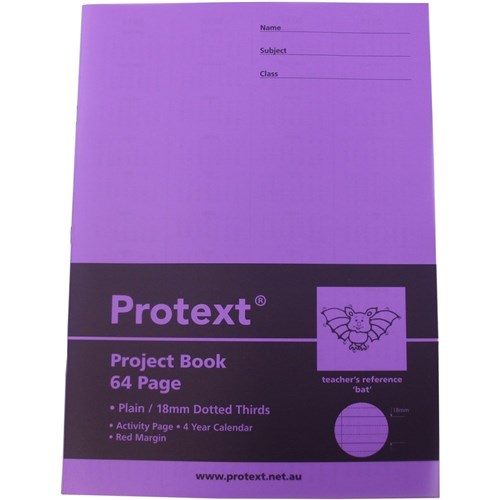 Protext Poly Project Book 330x245mm Plain & 18mm Dotted Thirds 64 Page-Bat