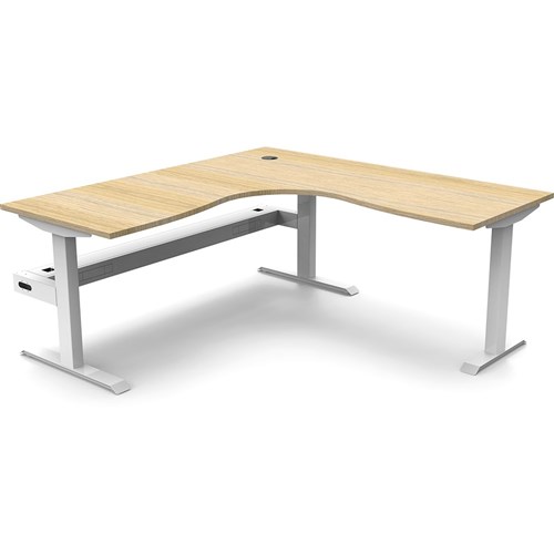 Rapidline Boost Static Corner Workstation + Tray 1800/1800W x 750D x 730mmH Oak/White