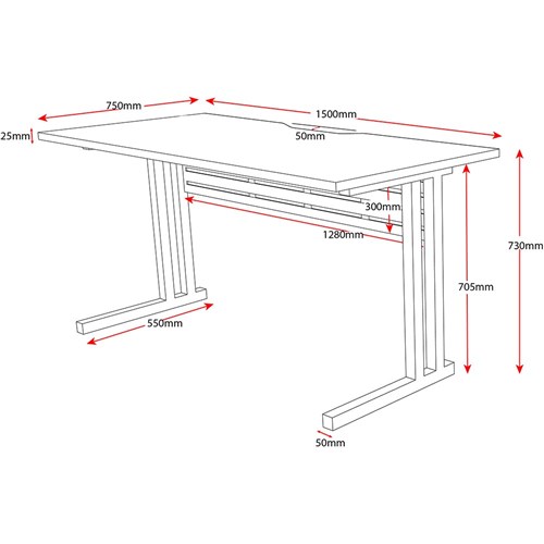 Rapidline C Leg Desk 1500W x 750D x 730mmH Natural Oak/Silver