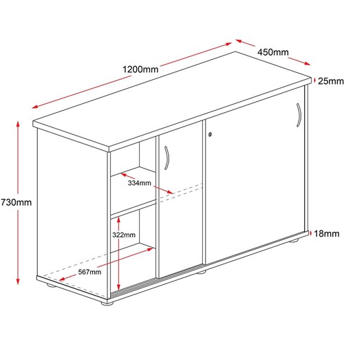 • Sliding doors and an internal shelf.