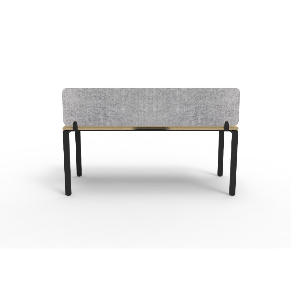 • Natural Oak worksurface with rigid edging and 410mmW x 50mmD scallop cable access. Black Satin powder coat frame. Eco screen.
