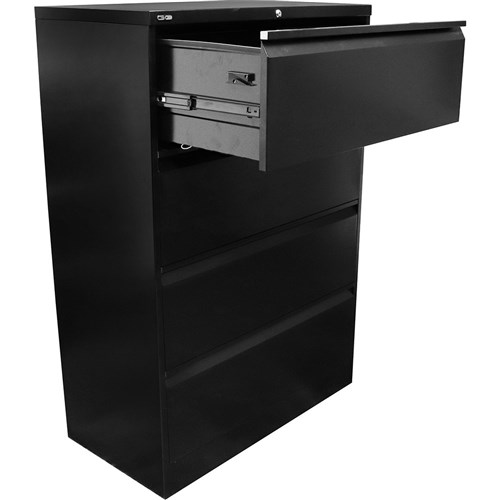 • Rapidline Go Lateral Filing Cabinet 4 Drawer 900W x 473D x 1321mmH Black