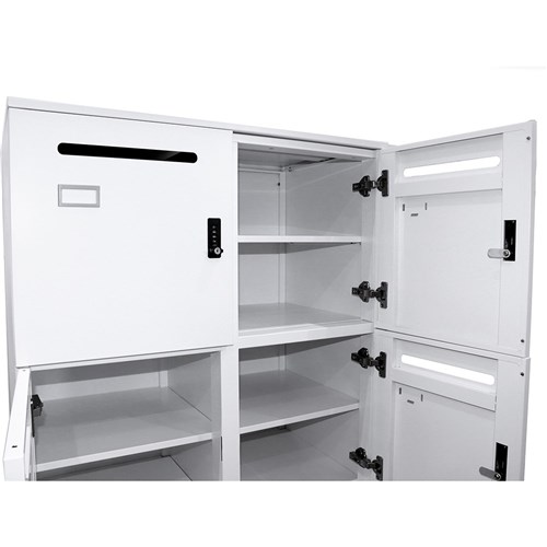• 4 digit combination lock fitted to each door with both private and public functions. 1 x master key provided with each unit.