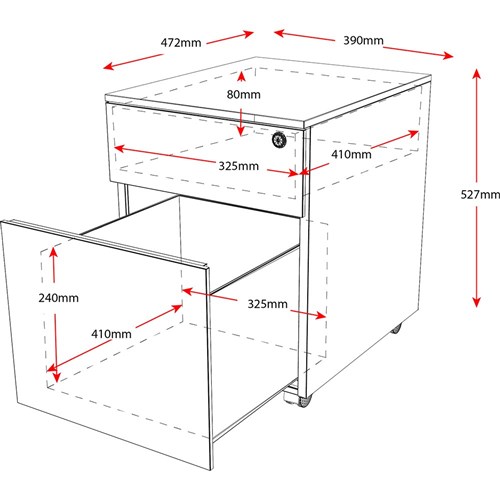 • 4 x castors, 5th wheel on bottom drawer for added stability.