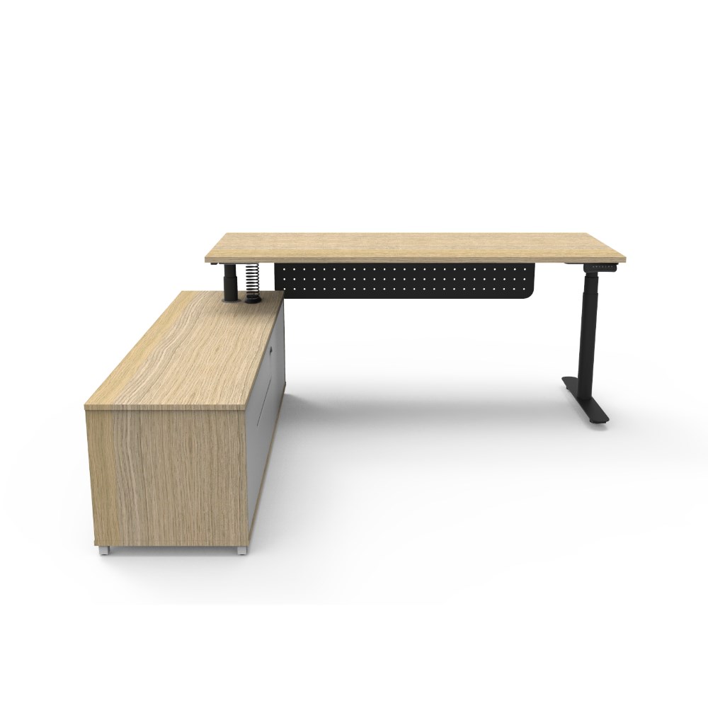 Rapidline Halo+ Executive Desk + LHS Cabinet + Panel 2020W x 2011D x 620-1270mmH Oak/Black