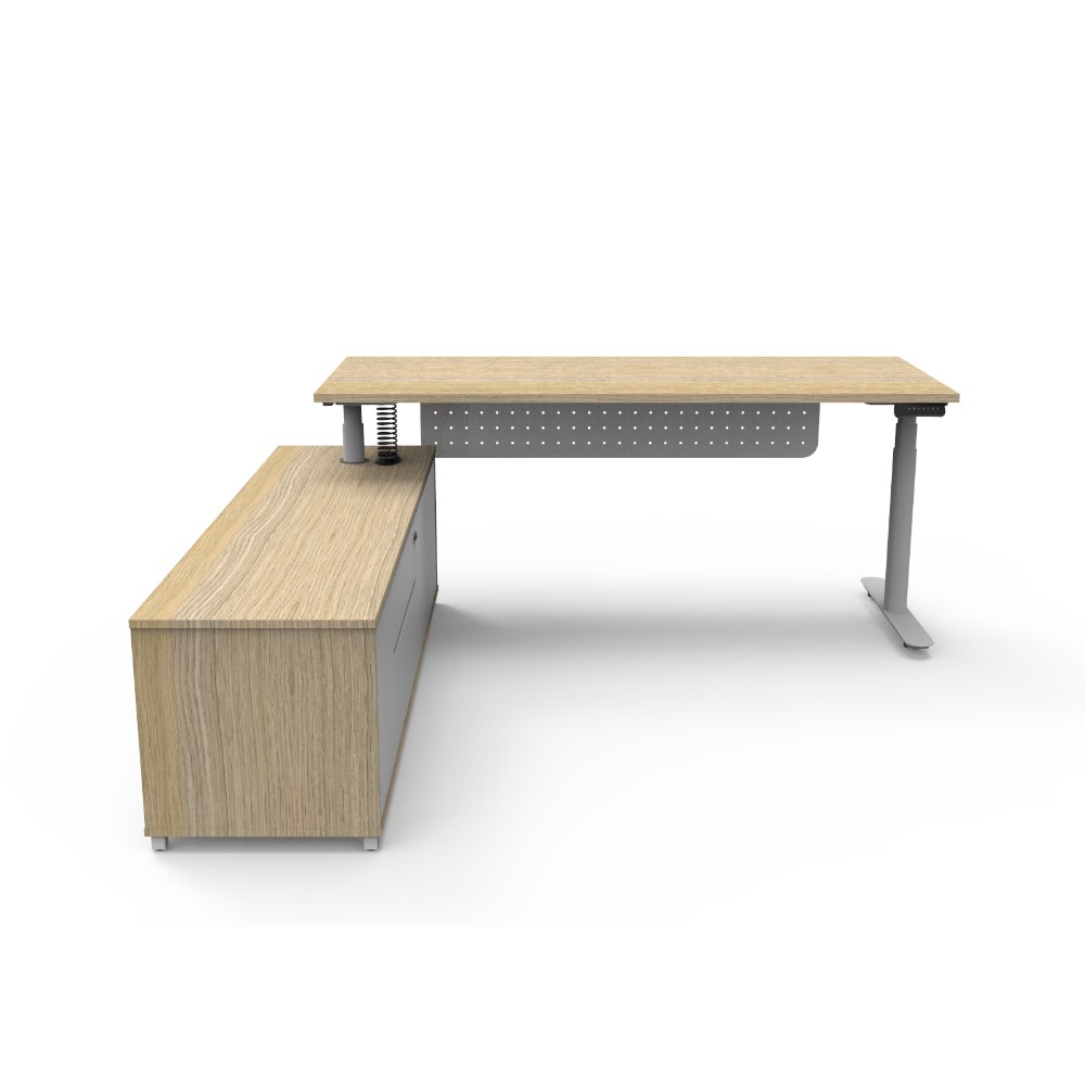 Rapidline Halo+ Executive Desk + LHS Cabinet + Panel 2020W x 2011D x 620-1270mmH Oak/White
