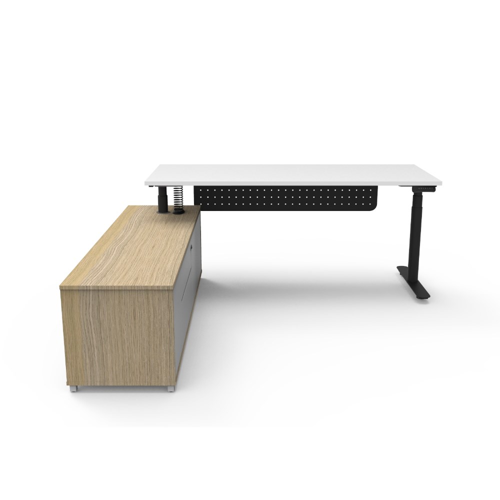 Rapidline Halo+ Executive Desk + LHS Cabinet + Panel 2020W x 2011D x 620-1270mmH White/Blk
