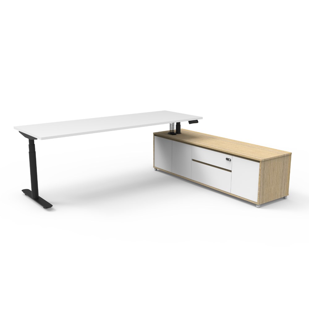 Rapidline Halo+ Executive Desk + RHS Cabinet 2270W x 1936D x 620-1270mmH White/Black