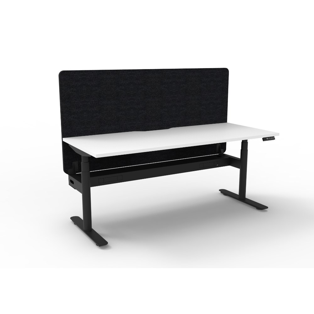 Rapidline Halo+ Single Sided Workstation + Black Eco Screen +Tray 1800Wx620-1270mmH Wht/Bl
