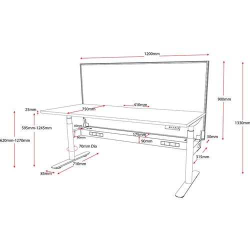 • 70mm diameter round column legs. 700mm wide foot size with adjustable leveling feet, return foot: 700mm. Comes with 30mm thick privacy screen.
