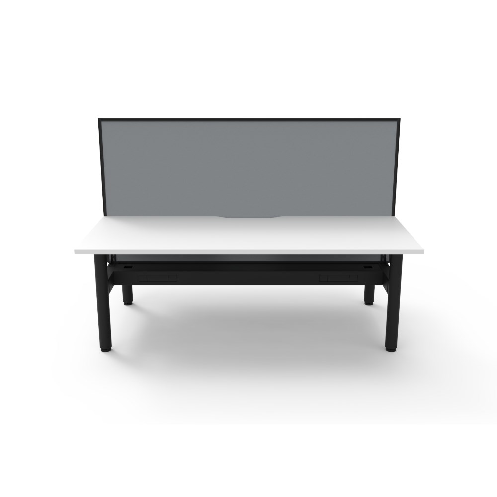 • Natural White top Black Satin frame. Double sided workstation with screen and cable tray.