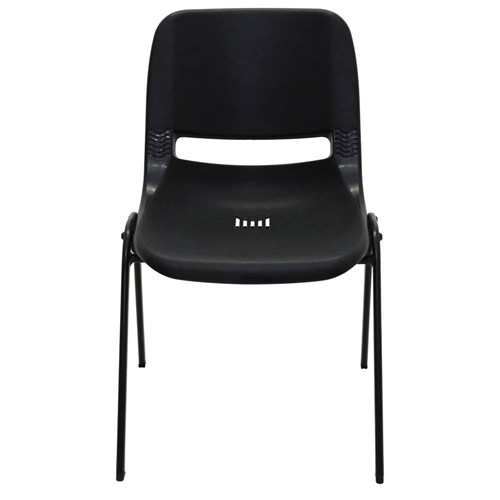• Strong durable stacking chair with polypropylene shell and black powder coated underframe.