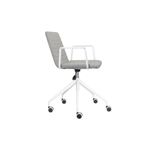 Rapidline Pixel Breakout Room Chair With Arms White Legs Light Grey Fabric Seat