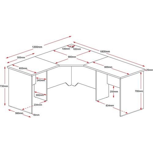 Rapidline Rapid Worker Corner Workstation 1200/1800W x 600D x 730mmH Beech And Ironstone