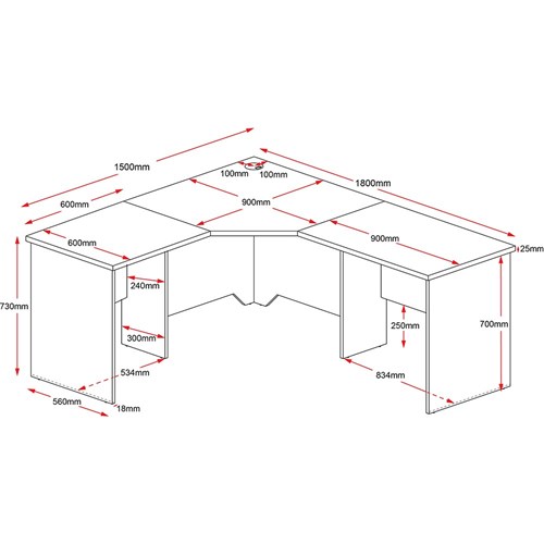 Rapidline Rapid Worker Corner Workstation 1800/1500W x 600D x 730mmH Cherry/Ironstone