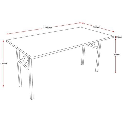 Rapidline Steel Frame Folding Table 1800W x 750D x 730mmH Beech Top Black Frame