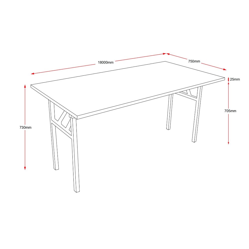 Rapidline Steel Frame Folding Table 1800W x 750D x 730mmH Cherry Top Black Frame