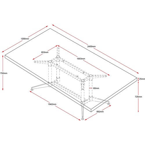 Rapidline Typhoon Boardroom Table 2400W x 1200D x 750mmH Cherry Top Black Frame