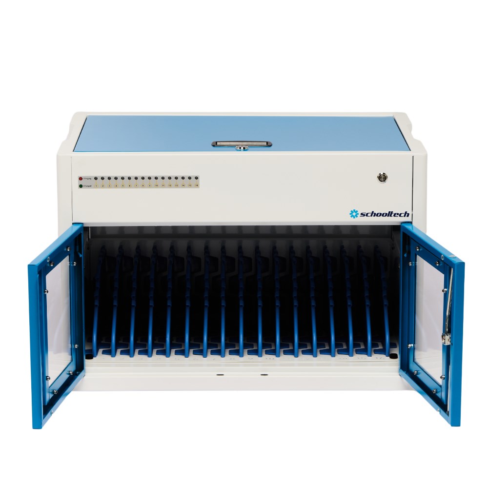 SchoolTech 16 Device Vertical USB-C Charging Station Cabinet For Notebooks And Devices Blue