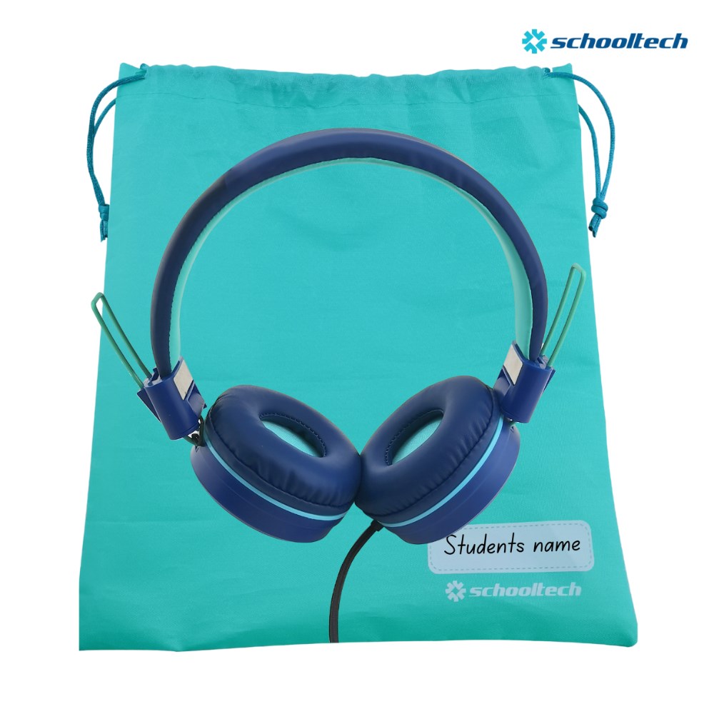 SchoolTech Extra Sturdy Headphones With Microphone 3.5mm Jack Teal/Navy Pack 30