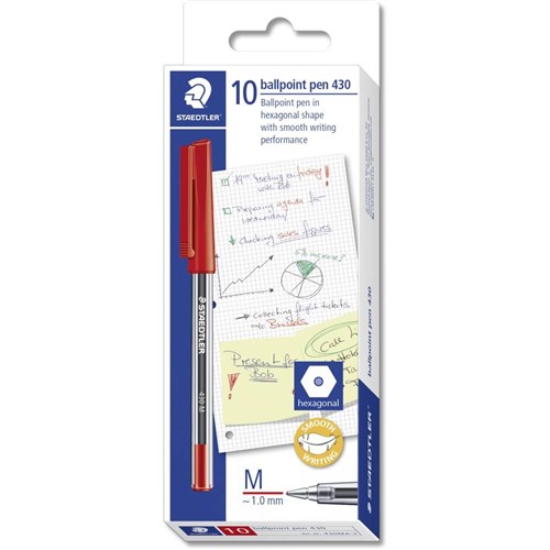 Staedtler 430 Stick Ballpoint Pen Medium 1mm Red